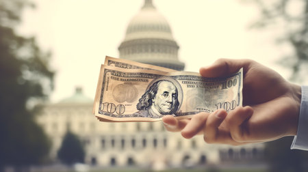 100 Dollar Banknote closeup. Capitol Building in Washington DC on the one Hundred Dollar Bill.