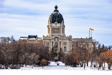 Left side view of the Legislative building of Saskatchewan province, Canada, located in Regina.