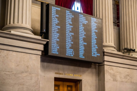 Nashville, TN, USA - July 6, 2022: The large meeting hall of House Chamber in Tennessee State Capitol