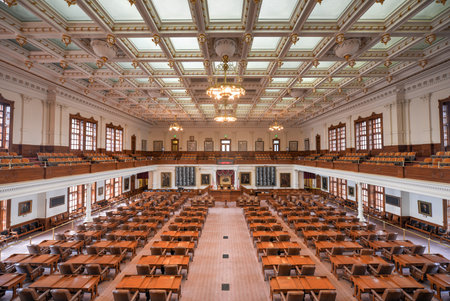 Austin, Texas, U.S.A - April 9, 2024 - The top balcony view inside of the Senate Chamber of the Texas Capitol