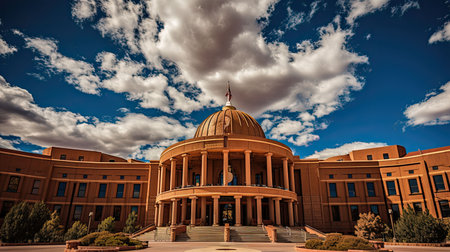 state capitol building being hit by first morning sunrays, created with generative ai