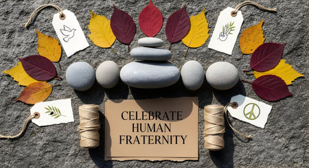 A stack of cards with people on them. The cards are white and have a colorful design. Concept of unity and diversity, as the people on the cards are of different races and ethnicities