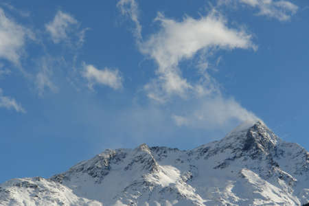 Mountain peaks in the clouds. Caucasus Mountains, Georgia, region Gudauri.