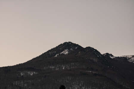 Mountains in Pordenone, Italy. Mountain chain with peaks covered by snow.