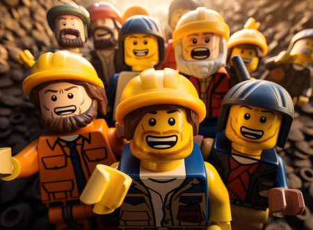 A group of plastic men from the constructor look at the camera
