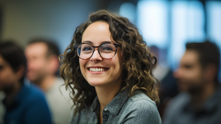 happy woman smiling in office.