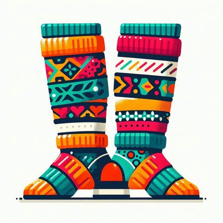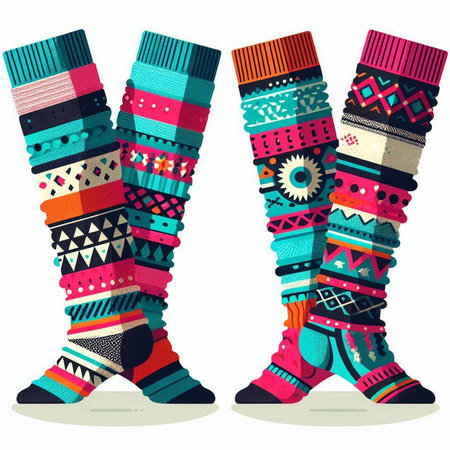 Illustration of colorful socks with ethnic ornaments on white background