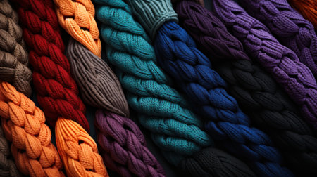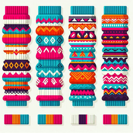 Multi colored woolen garments woven with intricate patterns for winter fashion generated by artificial intelligence