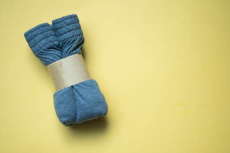 Rolled folded men boxer briefs with brown paper on a yellow background