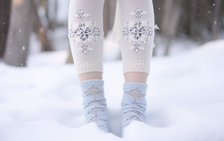 Leg Warmers with Snowflake Patterns on White Background