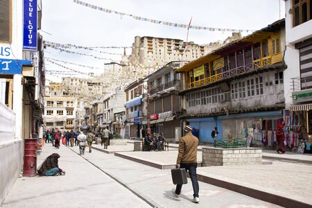 Leh, India - 19 June 2019: Main market at the downtown of Leh City