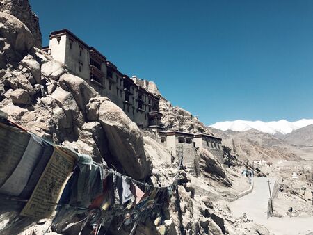 Prayer tibetan flags near the Namgyal Tsemo Monastery in Leh, Ladakh