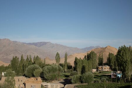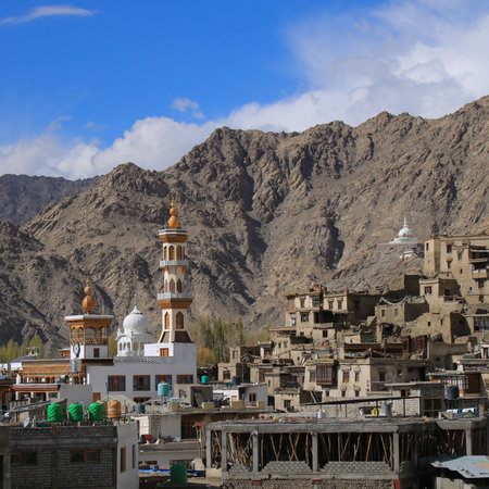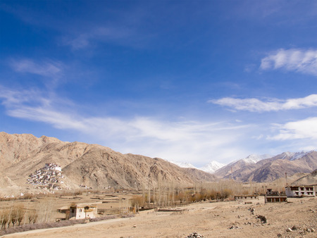 Landscape of Leh-Ladakh city with blue sky, northern India. It is located in the Indian Himalayas at an altitude of 3500 meters.