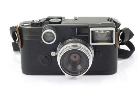 Film camera unknown model. manual object. In the background is a leather case of cabura.