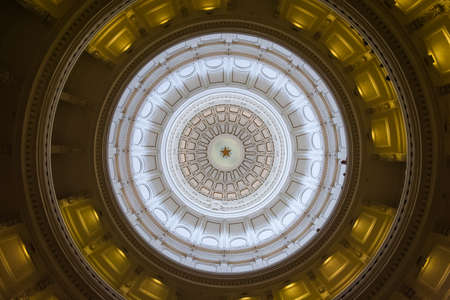 Austin, Texas - May 23, 2022: Inside the rotunda of the Texas State Capitol Building, the domed ceiling with the word Texas and lone star.