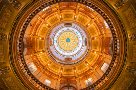 Lansing, Michigan, USA - January 20, 2018: The rotunda of the Michigan State Capitol building in downtown Lansing Michigan.