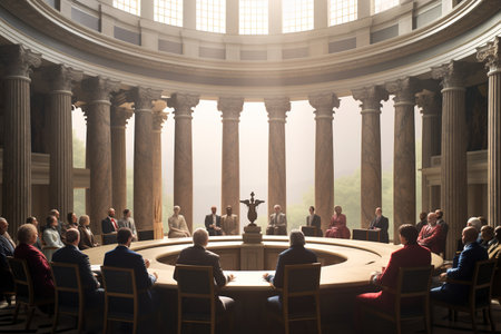 International Round Table Talks. Statesmen and politicians are discussing issues of cooperation. High quality photo