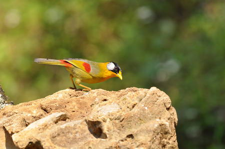 beautiful male silver-eared mesia Leiothrix argentauris in Thai forest