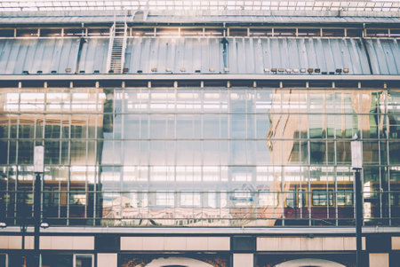 Train passing a metro station under glass windows of modern subway station in Berlin, Germany.