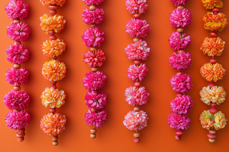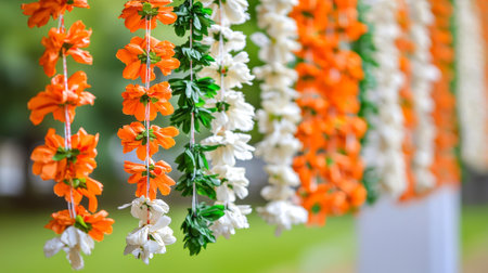 Vibrant Flower Garlands Celebrating Republic Day of India. Concept of Cultural Heritage, Patriotism, Floral Decorations, Festive Beauty. Copy space.