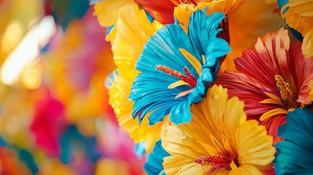 Vibrant Brazilian Carnival Flowers in Close-Up Art Concept of Colorful Celebration, Festivity, Floral Artistry. Copy space.