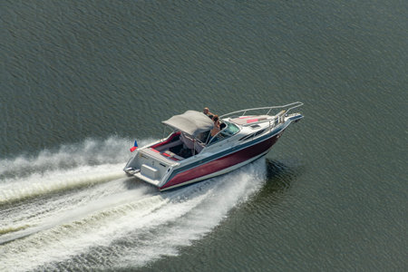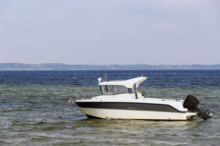 Kalvehave Denmark - May 5. 2018: Power boat sailing by full power