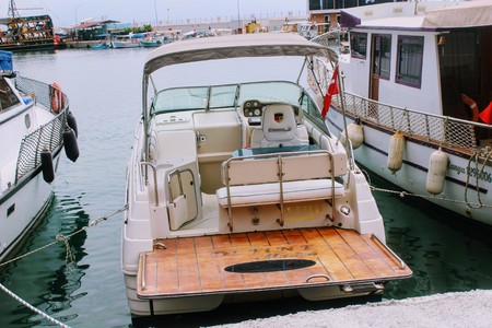 Limassol Cyprus May 14, 2020 Closeup of a boat moored in the marina of Limassol in Cyprus island
