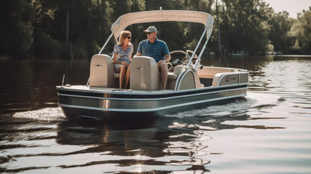 Pontoon Boat on Calm Water at Sunset A Serene Evening Cruise Experience on the Lake
