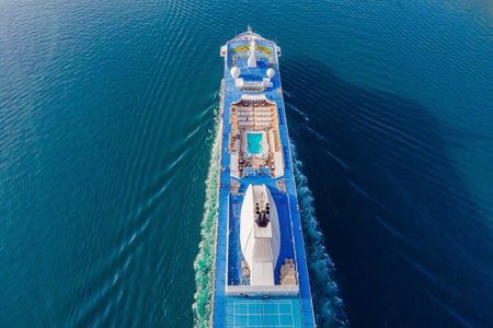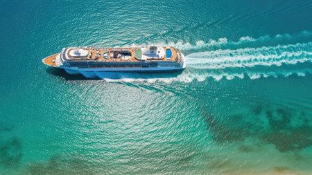 Breathtaking aerial view of a majestic cruise ship, an ideal backdrop for a dream vacation getaway