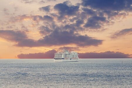Luxury cruise ship sailing to sea on sunrise