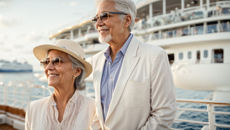 A senior couple taking a cruise and exploring new destinations created with Generative AI