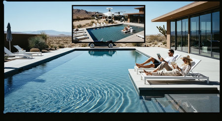 Experience a serene escape at this tropical poolside retreat, featuring inviting lounge chairs, lush greenery, and a tranquil atmosphere perfect for relaxation.