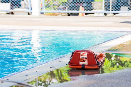 A lifeguard watching over a swimming pool from a lifeguard chair, ensuring swimmer safety