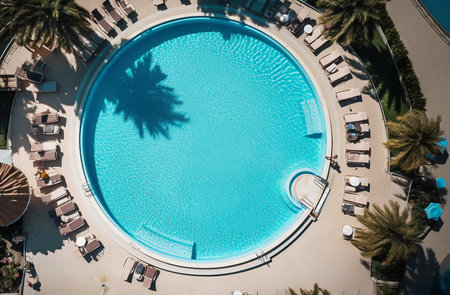 Aerial view of luxury hotel swimming pool in Dubai, United Arab Emirates