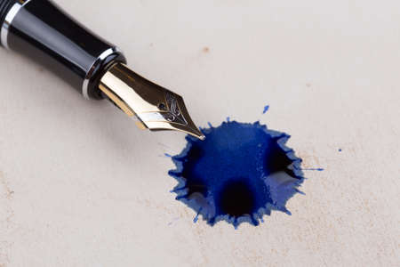 old fountain pen lying on old paper with blots