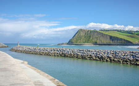Cantabrian Sea green coast with Deba town, Pais Vasco Spain