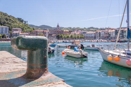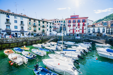BERMEO, SPAIN - NOVEMBER 1, 2021: Harbor with fishing boats in Bermeo, Basque Country, Spain