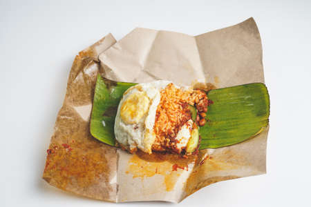 Close up of Nasi Lemak with a white background, This food is a traditional and popular food in Malaysia