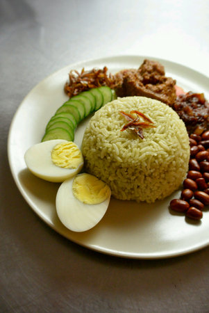 Malaysia Food Nasi Lemak Pandan with Beef Rendang
