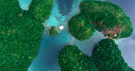 Aerial view of Sugba lagoon. Beautiful landscape with blue sea lagoon, National Park, Siargao Island, Philippines.