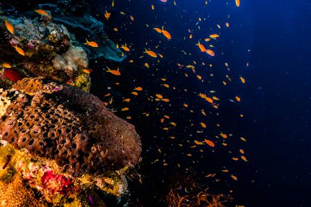Underwater coral life. Underwater world. Underwater life scene