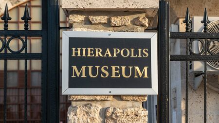 Denizli, Turkey - October 2019: The signage for the Hierapolis ancient city museum in Pamukkale
