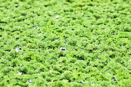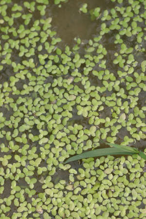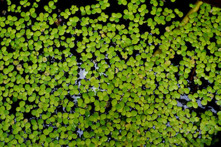 Green water plant, duckweed floating on the water in pond