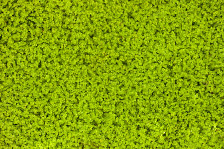 Close up of green duckweed texture background. Top view of green duckweed texture.