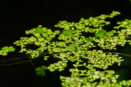 Close up of Duckweed Leaves float on water surface in garden