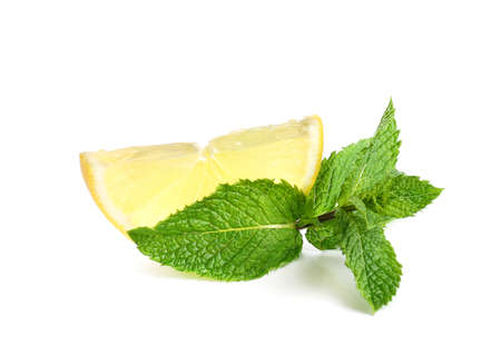 lemon wedges mint leaves background. Resolution and high quality beautiful photo
