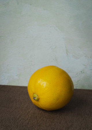 yellow lemon on a blue background with copyspace. Design, Fine Art, Minimalism