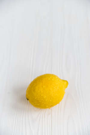 Ripe yellow lemon on white background. Antioxidant for healthy diet. Citrus fruit high in vitamin C.