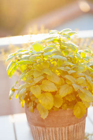 lemon balm (melissa) herb in flower pot on balcony