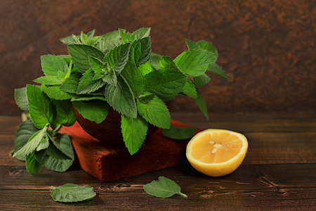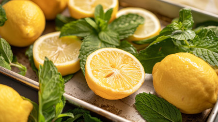 Closeup of fresh lemon and mint